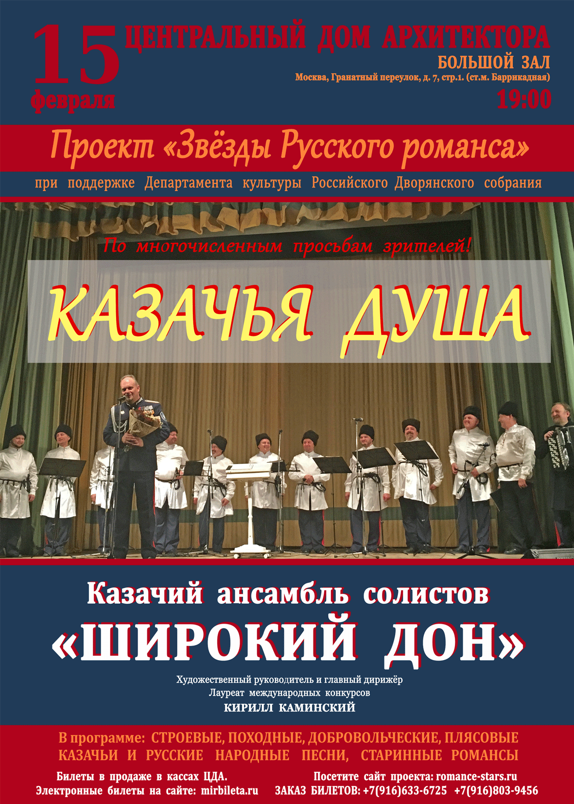 15 февраля 2018 "ШИРОКИЙ ДОН" выступит с концертной программой Казачья Душа в Центральном Доме Архитектора!
